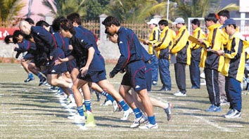 天津队参加体能测试一镜头
