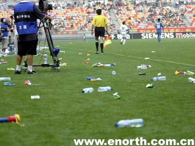 【附图】康师傅0-2申花 球迷扔到场内的杂物