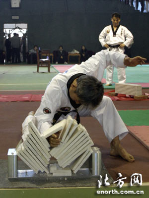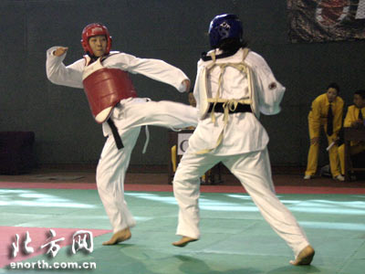 北方网消息(记者刘欣):2004年10月16日上午,由天津市体育竞赛管理中心主办,天津市跆拳道运动协会、天津开发区圣德事业有限公司承办的“2004天津市道魂杯青少年跆拳道锦标赛”在天津农业银行培训中心体育馆拉开战幕。天津市有关领导李振东、天津市体育局副局长谢德龙参加了开幕仪式并讲话,对此次赛事的规模、水平及市场化运作给予了充分地肯定。在开幕式上,来自韩国的10名跆拳道高手会的会员做了精彩的表演。