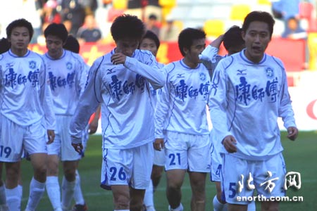 北方网消息(记者马宏浩 摄影刘欣):2005年4月24日15点30分,2005年中超联赛第五轮,天津康师傅队主场迎战山东鲁能泰山队的比赛在泰达足球场进行。最终,天津队未能抵挡住山东队的凌厉攻势,1:3不敌对手,结束了开赛以来的不败战绩。