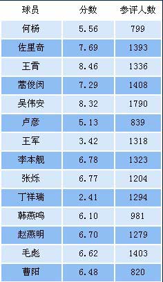 本轮为泰达球员打分中:得分最高为王霄(8.46分,1336人参与投票),得分最低为丁祥瑞(2.41分,1294人参与投票)。