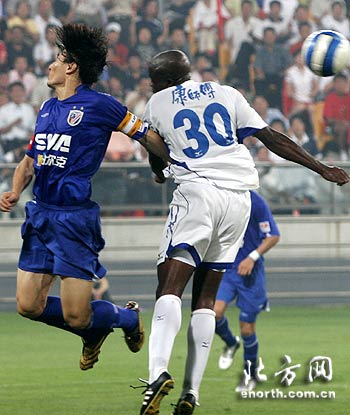 康师傅1:1平上海申花 亨利头球PK李玮峰(图)