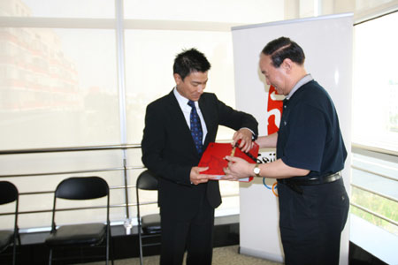 9月5日,刘德华来到北京奥组委,接受了北京奥组委执行副主席蒋效愚的亲切接见。华仔说:“他希望为北京奥运会(北京奥运会新闻,北京奥运会说吧)付出,为她唱歌,为她做任何事情。”他还表示,2008年,他一定会来北京,参与到奥运会中。