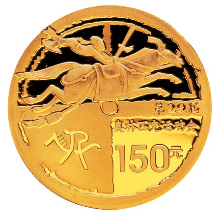 贵金属纪念币(第1组)的设计融入了浓厚的中国民族特色,共同正面图案为第29届奥林匹克运动会会徽图案及中国传统对龙造型,并刊国名、年号“2008”。1/3盎司金质纪念币(2枚)背面图案之一为中国古代马术运动造型及第29届奥林匹克运动会运动项目——马术体育图标,之二为中国古代射箭运动造型及第29届奥林匹克运动会运动项目——射箭体育图标,并均刊“第29届奥林匹克运动会”字样及面额。1盎司银质纪念币(4枚)背面图案之一为儿童放风筝、中国结及纸风车,之二为儿童跳山羊、中国结及兔儿爷,之三为儿童滚铁圈、中国结及双鱼挂饰,之四为儿童踢毽子、中国结及布老虎,并均刊“第29届奥林匹克运动会”字样及面额。1/3盎司圆形金质纪念币(2枚)为精制币,含纯金1/3盎司,直径23毫米,面额150元,成色99.99%,最大发行量各为60000枚。1盎司圆形银质纪念币(4枚)为精制币,含纯银1盎司,直径40毫米,面额10元,成色99.9%,最大发行量各为160000枚。该套纪念币由深圳国宝造币有限公司、上海造币厂和沈阳造币厂联合铸造,并分别在币面上标有Z、S、Y字母予以区分,中国金币总公司总经销。