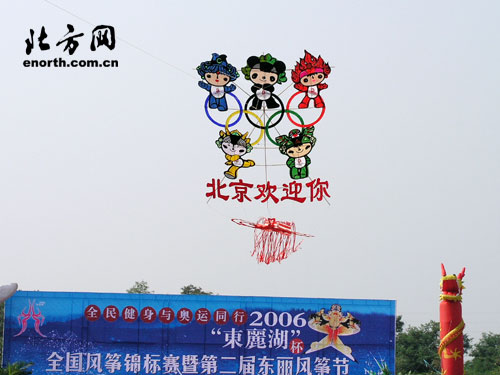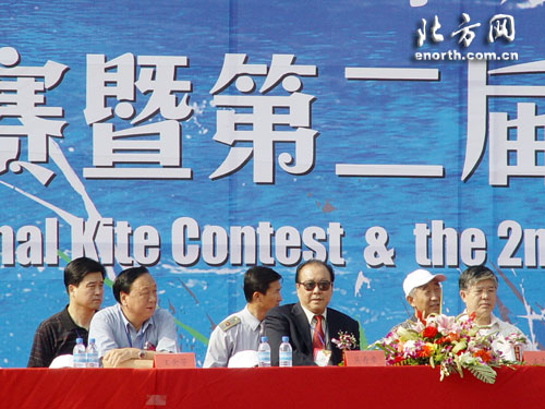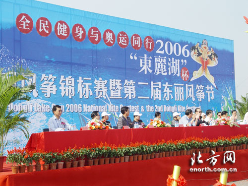 北方网消息(记者谢力强 通讯员孙乃武):为弘扬中华民族传统体育文化,加强和促进各省市、地区和行业体协风筝爱好者的交流与交往,推动风筝活动在我市的广泛开展与提高。9月22日上午,全民健身与奥运同行“东丽湖杯”2006年全国风筝锦标赛暨第二届东丽风筝节在风景秀丽的东丽湖拉开帷幕。中国奥委会副主席吴寿章、天津市体育局副局长王金芳、东丽区委副书记姜志山、区人大常委会副主任陈继亮、杜要武、区政协副主席周遵成,以及国家体育总局社体中心业务三部主任、中国风筝协会秘书长杨曾秦等领导出席开幕式,并观看了比赛。
