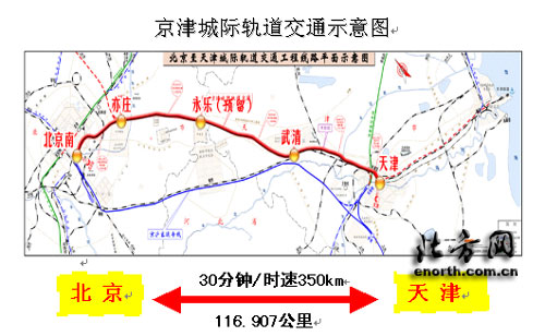 京津城际铁路是连接北京与天津的全国第一条城际间高速铁路。这条铁路建成后,列车时速将达每小时350公里,京津两地可实现30分钟直达,大大促进京津优势互补,推动京津两市加快发展。在建的天津站交通枢纽工程是京津城际铁路的重要组成部分,是京津城际铁路客运站主站房所在地。京津城际铁路建成后,地铁2、3号线和津滨轻轨将在这里交汇,实现北京、天津、滨海新区、滨海国际机场的连通,市民不出站就可直接换乘,充分享受安全、便捷、通畅、环保的交通方式。