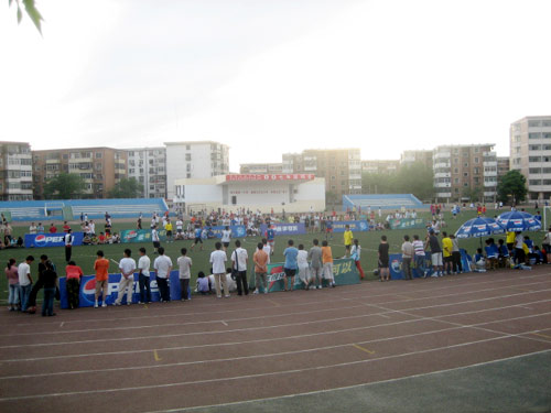 百事球王争霸赛既是热爱足球的年轻人的战场,也是他们完善自我、充实人生、获得友谊的平台。敬请请继续关注2007百事球王争霸赛天津赛区5月26日-27日天津商学院和天津民航大学的比赛。