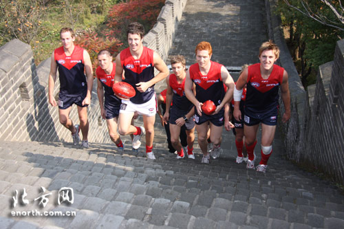 | 墨尔本澳式足球俱乐部队员登上长城 |