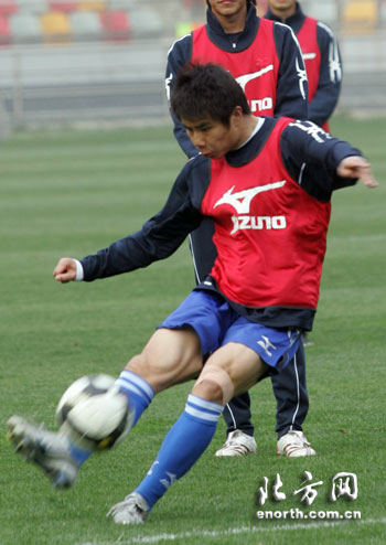 泰达主场备战青岛中能 蒿俊闵任意球射门