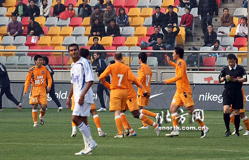 比赛接近尾声,落后一球的泰达队已经占据了绝对的场面优势。直到第85分钟,蒿俊闵前场右路突破传中,曹阳在禁区内力压对方后卫冲顶,球应声入网!将比分改写成1:1。最后时间泰达仍然占据主动,只可惜未能再次攻破青岛球门。泰达队只得在主场无奈接受平局。