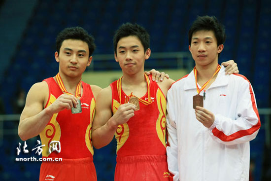 北方网消息(记者季婕非 摄影马成):5月10日是全国体操锦标赛暨奥运选拔赛最后一天的比赛日,十枚单项金牌在这一天全部产生。在男子六个项目的比赛中,年仅20岁的小将邹凯凭借稳定出色的发挥夺得了自由体操和单杠两项冠军,成为当晚比赛的亮点。