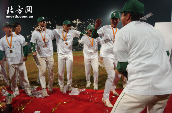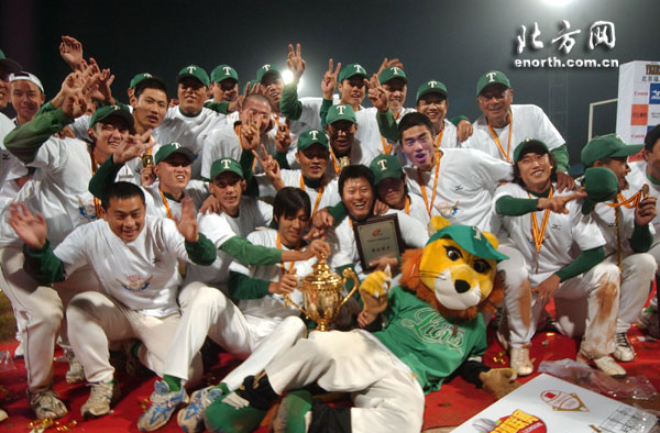 比赛结束后,天津道奇棒球场上空燃放起了绚丽的礼花以示庆祝。天津雄狮队也在全场球迷的注视下中高举起本赛季中国棒球联赛总冠军奖杯,同时获得了30万元人民币的总冠军奖金。