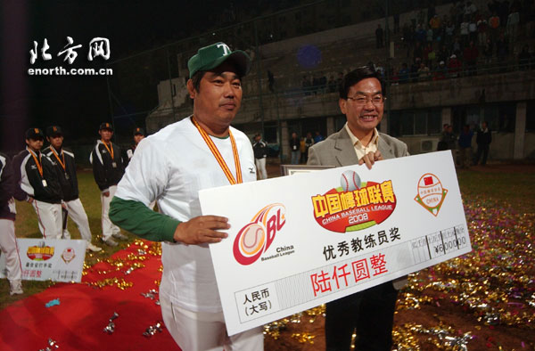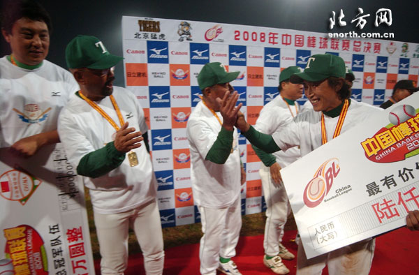 此外,本赛季中国棒球联赛各项奖项出炉——除北京猛虎队队员崔晓获得最佳新秀奖和最佳安打手奖之外,其他奖项均被天津雄狮队摘得。游击手侯凤连获得最有价值球员;投手吕建刚获得最佳投手奖;二垒手刘建忠获得最佳防守奖;王靖超获得最多得分手奖;王超获得最佳盗垒受奖;主教练焦益获得优秀教练员奖。另外,天津赛区获得本赛季中国棒球联赛最佳赛区。至此,本赛季中棒联赛也正式落下帷幕。