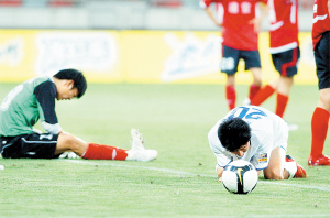 不能不提的是,河南队的牛皮糖风格除了体现在防守方面外,球员频频倒地也成了比赛一大亮点。整个下半时,肖智至少痛苦地倒地三次,每当被担架抬到场外的时候,他就立刻从担架上跳下,然后挥手示意回到场上。至于河南队球员在比赛中频频出现抽筋的情况,早已经让球迷感到了厌倦。补时阶段,当值主裁也看不惯河南队这样表现了,当曾诚痛苦倒地后,他立刻出示了一张黄牌,只是这样的警告似乎来得晚了一些。