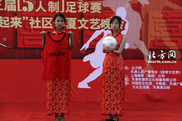 北方网消息(记者谢力强 实习记者张全):7月21日晚,由北方网、天津人民广播电台《体育大世界》、上海烟草(集团)公司天津卷烟厂等单位联合主办的2009“红双喜”杯天津市第三届五人足球联赛暨“快乐一起来”社区消夏文艺晚会,在银河广场全面启动。