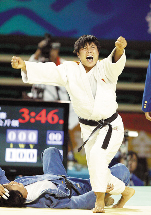 上届全运会,代表吉林参赛的窦书梅夺得63公斤级冠军。昨晚,这位天津姑娘用一块沉甸甸的金牌向家乡父老献礼。“能代表家乡,夺得一枚全运金牌,我太激动了。”走下赛场的窦书梅激动地说。泪水在眼眶打转的她在压力面前没有趴下,而是像个战士,奋勇杀场,以完美的表现止住天津女柔“不见金”的颓势。