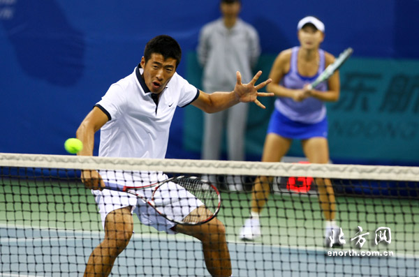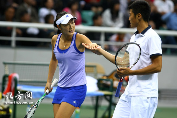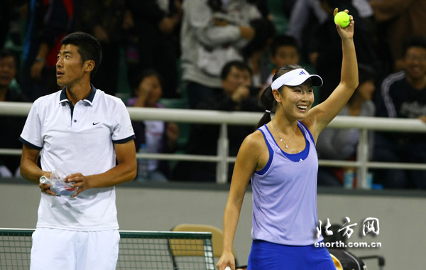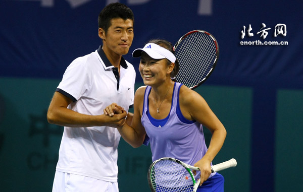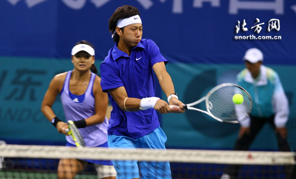 24日下午,十一运网球混合双打比赛在济南奥体中心网球场进行。结果,天津选手彭帅/李喆2:1(6:7(2)、6:3、6:2)淘汰上海组合柏衍/周弈妙晋级决赛。在另外一场半决赛中,北京队的于欣源/刘婉婷以2:0(6:4、7:5)淘汰解放军队的卢昊/鲁晶晶。