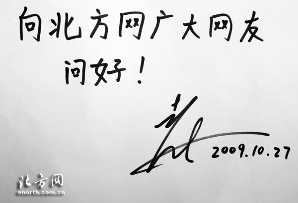 在与记者的交谈中,彭帅也希望通过北方网表达对广大网友的祝福,并亲笔留言,向北方网网友问好。彭帅表示,她在网上看到了许多有关她的报道,以及给她的留言。她非常感谢天津网友的支持,她自己也会继续努力,为天津体育争光。