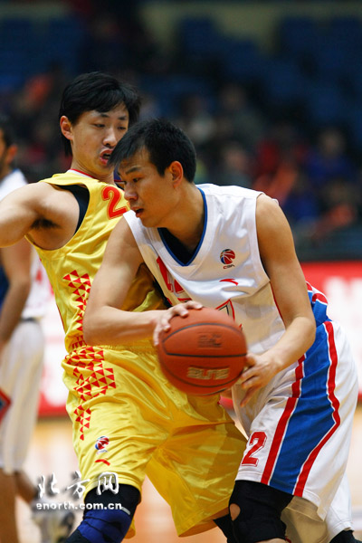 比赛伊始,天津男篮和山东男篮就展开了激烈地角逐,双方比分不断交替上升,你追我赶之势越演越烈。法赫德助攻张楠想要完成快攻,但山东男篮好像早有准备,迅速回防,形成了二打一的局面,好在球在张楠手中踉跄而下,拿到两分。在这个过程中,即便此球一投不中也不用担心,因为老将徐贵军已经上前准备补篮,这充分显示了他丰富的场上经验,随后徐贵军更在外线寻得得分良机,三分命中。第一节还剩5分多钟时,天津男篮集体手感不佳,张楠连续两次三分不中,队员略显急躁,此时,仍然是徐贵军挺身而出,远投三分命中。眼见天津男篮势头正猛,山东男篮果断的叫了暂停,再回到比赛当中的天津男篮命中率急剧下滑,就连徐贵军也在空位投篮时失了准心,而且出现了一次不应该有的传球失误。第二节比赛,徐贵军再次完成漂亮的断球,贡献三分,可惜天津男篮在进攻端整体乏力,让山东男篮有机会把比分追平。