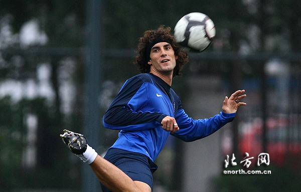 天津北方网讯:8月21日,天津泰达队在体育学院南足球场进行了赛前训练,备战将于22日展开的对阵杭州一战。在将近一个小时的踩场训练中,泰达队并没有进行常规的分组对抗,而是在大部分时间里选择了跑步和传球练习。