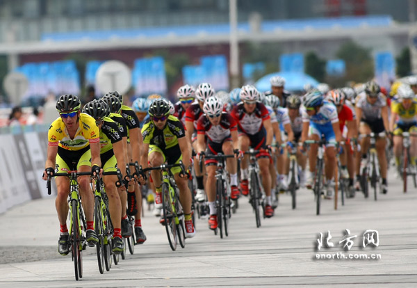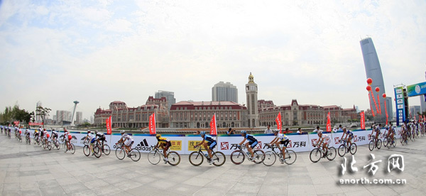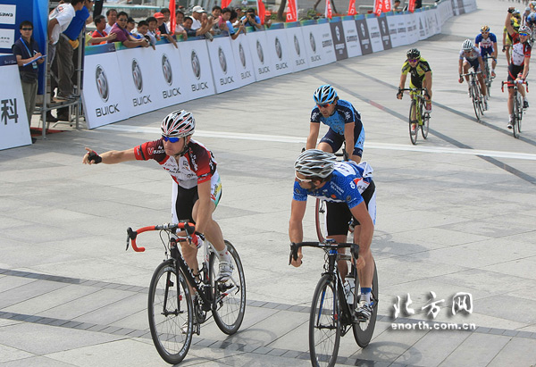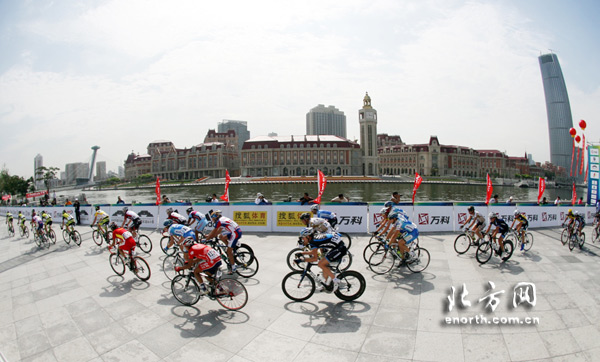 天津北方网讯:9月19日,首届环中赛在天津站广场前完美收车,经过85公里角逐,澳大利亚弗莱尔车队的坎普斯在大集团冲刺的关键时刻笑到最后,以1小时45分03秒夺得环中赛最后一个赛段冠军,并依靠冲刺积分赢得象征冲刺王的蓝衫。