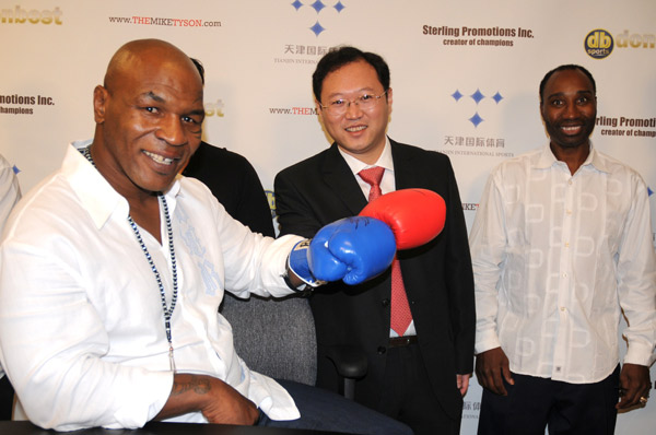 天津北方网讯:2010年10月25日,天津首届国际拳击表演赛暨WBO洲际拳王赛新闻发布会在天津梅江国际会展中心举行。会上宣布,“天津首届国际拳击表演赛暨WBO洲际拳王赛”将于12月在津举行,前世界重量级拳王迈克•泰森将以全球推广大使的身份出席此次赛事及系列推广活动。而北京奥运冠军张小平将作为此次赛事的中国形象大使,在赛场上亮相。此外,会上还举行了天津国际体育发展有限公司的揭牌仪式,以及“天津首届国际拳击表演赛暨WBO洲际拳王赛”的启动仪式。