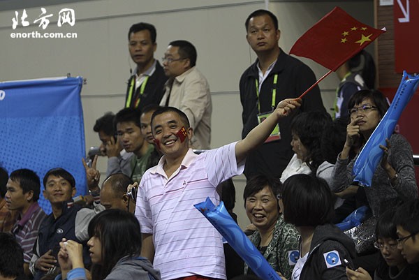 天津北方网讯:天津球迷小帮子在中超联赛结束后,也没有休息,他也来到了广州亚运会为中国健儿加油。他这次主要的助威对象就是拥有三名天津国手的中国女排,“天津女排的比赛每场我都去现场给她们加油,有感情啊,虽然现在王指导不在国家队了,但是我还是要给我们的女排姑娘们加油。”