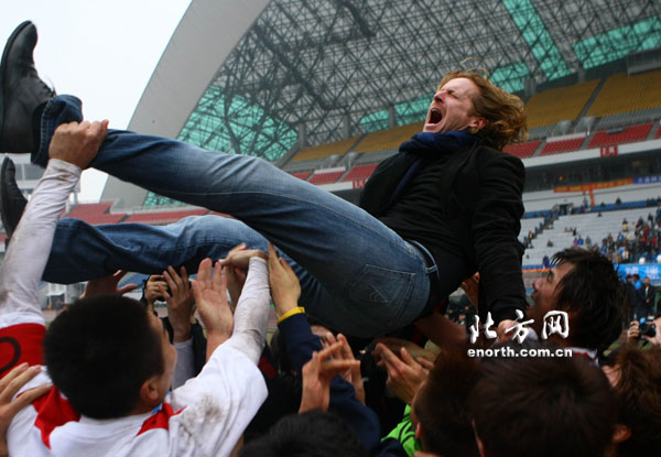 老汉与泰达选援团会合 看好布加勒斯特中后卫