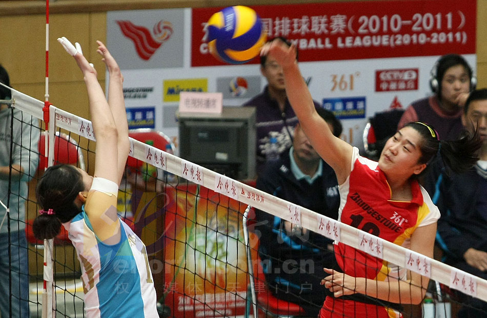 2011年1月15日,2010-2011赛季全国女排联赛A组进入第7轮比赛的争夺,此前保持不败的天津女排坐镇主场迎战河南女排,最终天津女排以大比分3-0战胜对手,取得了联赛七连胜,三局比分为25-14、25-18和25-14。(刘欣摄)