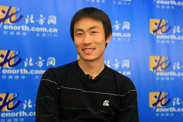 4月13日上午,天津泰达球员王新欣做客北方网体育频道《体坛沙龙》栏目,与北方网网友进行交流,并回答了网友提出的问题。图为王新欣微笑。