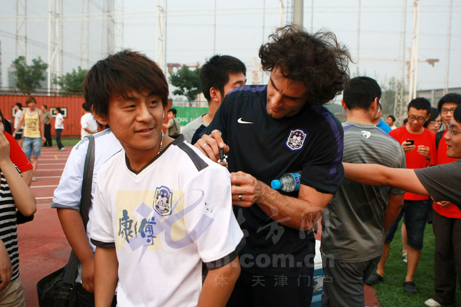 28日下午,泰达队在天津奥体中心训练场进行了公开训练,数十名球迷近距离观看了泰达队的训练。于大宝、曹阳、陈涛、卢西亚诺等球员在训练结束后满足了球迷们签名合影的要求(摄影刘欣)……