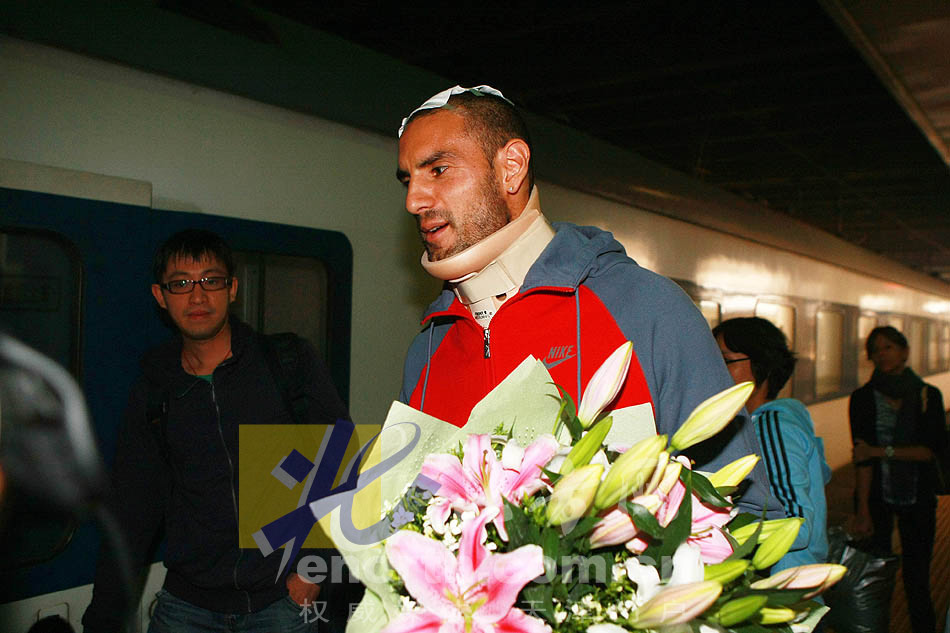 北京时间10月11日,在与广州恒大队的比赛中严重受伤并接受手术治疗17天后,天津泰达队外援卢西亚诺乘坐的T16次列车准时于13:25顺利抵达北京西站。(摄影 刘欣)……