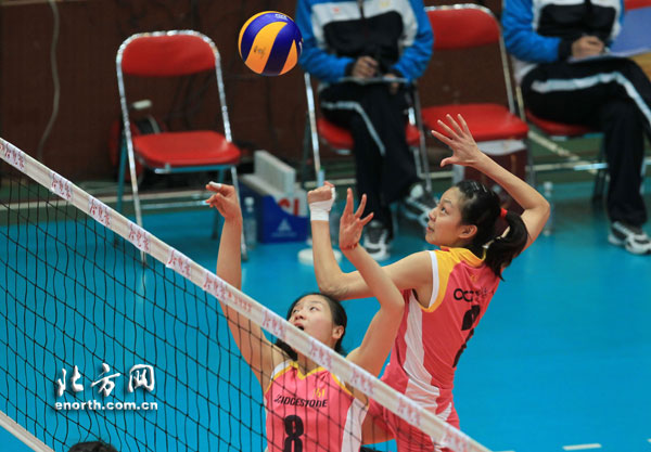 上一轮联赛与上海女排一役,天津女排在2:0领先的局面下,最终以2:3被对手逆转。赛后,天津队主教练刘晓明指导将输球的首要因素归咎于年轻队员在关键球处理上的不利。但此番与八一女排一战,天津女排阵中的多位年轻队员却都在赛场上表现得异常“早熟”和果断。这其中就包括天津女排队中的“小妹妹”王宁,小将在网口和对手僵持球力拼时的果敢与机敏也让八一女排大吃苦头,对此,搭档张晓婷谈到王宁的出色表现时也毫不吝惜溢美之词:“王宁在比赛中的进步是明显的,她在场上很有冲劲,打球给人感觉也很有气场,下手很果断。”