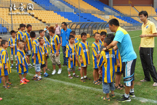 天津北方网讯:北京时间8月2日,2012天津松江足球夏令营在天津团泊足球场隆重开营。本次夏令营由天津松江体育文化产业有限公司主办,来自天津市区及静海县的近30名学员欢聚一堂,他们将在这里进行为期一个月的比赛和活动,在切磋球技中享受足球带来的快乐,感受松江的体育文化。