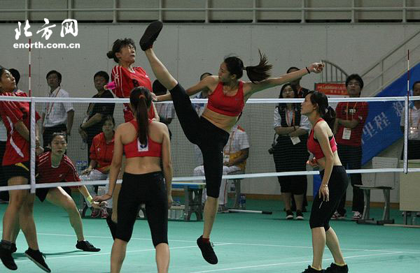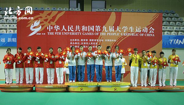 天津北方网讯:9月15日下午,第九届全国大学生运动会毽球项目的比赛在天津医科大学体育馆落下大幕,在最后一天的争夺中,天津女队获得女子三人(团体)项目金牌,天津男队在三人决赛中不敌实力强劲的山西队,获得了银牌。