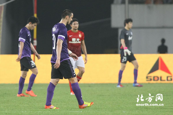 赛前热身训练时,助理教练王霄向队员们反复强调:“比赛中无论谁丢球,立刻要在第一时间反抢。”但真正到了比赛中,泰达似乎始终在跟着恒大的节奏踢,赛后代理主帅刘学宇也承认,“对方的实力太强了,跟着对方节奏打,我们耗费了太多不必要的体力,这让比赛变得很困难。”