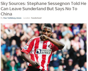 塞塞尼翁与桑德兰队的合同2015年6月30日到期,据悉其在欧洲转会市场上的身价在1000万欧元左右。有消息称,他已确定加盟泰达。不过塞塞尼翁对来中超踢球并不感兴趣,也不会考虑加盟泰达。一位接近塞塞尼翁的消息人士表示:“他在桑德兰过得很愉快,希望未来能够继续留在这里。但桑德兰已经通知他自寻下家,他只能选择离开了。”至于有消息称塞塞尼翁已经找到了新东家,这位消息人士予以否认:“目前为止还没有定论。”