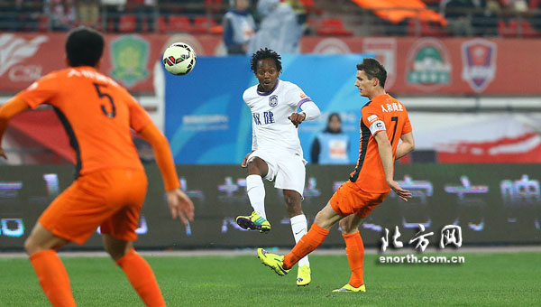 北京时间2015年4月11日19:35,2015赛季中超联赛第5轮,天津泰达客场挑战贵州人和,图为比赛精彩瞬间。