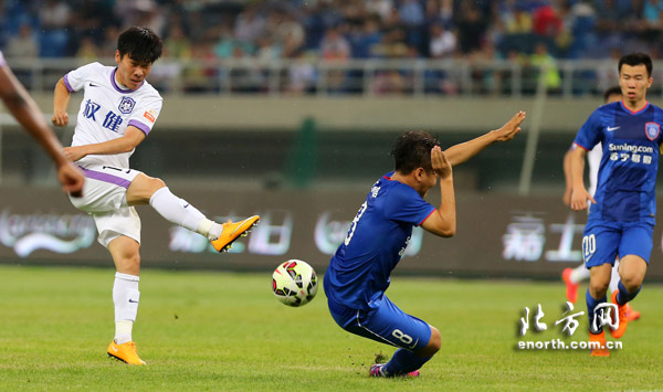 天津北方网讯:5月17日晚,泰达队凭借巴尔克斯的点球,以1比0主场力克江苏舜天队,获得本赛季主场首胜。比赛中,为泰达队创造点球的是小将王秋明。赛后王秋明表示,给自己的表现只能打7分,因为他在体能方面还有些不足。