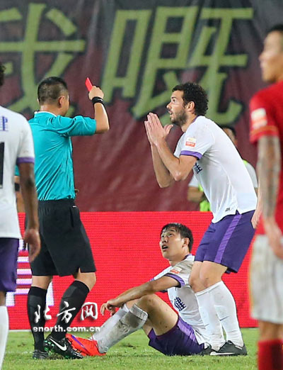 天津北方网讯:2015年6月4日晚,中超联赛第13轮,天津泰达客场与广州恒大队比赛在广州天河体育中心进行。结果,天津泰达队客场2比2战平恒大队。吕伟的红牌成为比赛的转折点,吕伟赛后对记者表示,他非常冤枉。而泰达俱乐部官员也表示,恒大队的那次进攻已经越位在先了,红牌和进球都是不成立的。