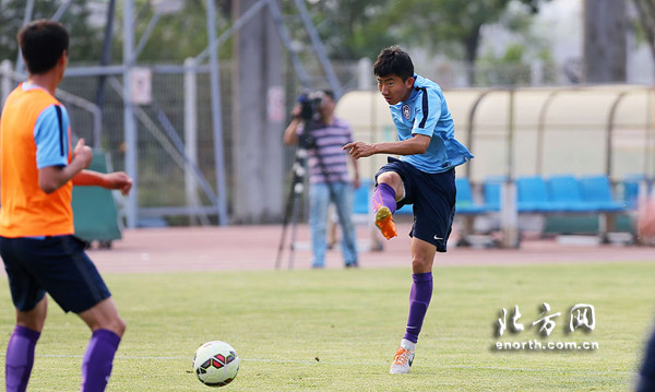 由于最近一段时间成绩不错,泰达队本次训练课依旧气氛轻松,全队在助理教练王霄的带领下记性抢圈等放松练习,进行了分组对抗。“泰达队在最近一段时间的训练和比赛状态都不错,大家都非常投入和努力。”阿里汉表示,“在今天的训练中,我们特别加强了防守的训练,特别是给后防队员讲了北京国安队进攻中的一些特点。”