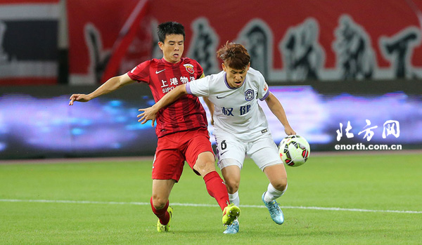 北京时间2015年7月16日19:45,2015赛季中超联赛第9轮,天津泰达客场挑战上海上港,图为比赛精彩瞬间。