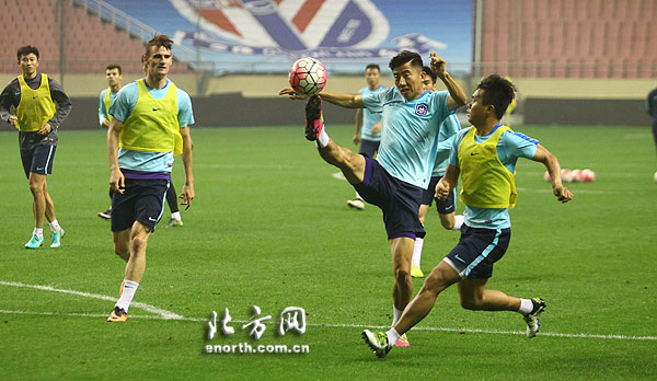 天津北方网讯:5月26日晚,天津泰达队在上海虹口足球场进行了赛前踩场训练,备战与上海申花队的中超关键战役。这场比赛的胜负将直接关系到泰达和申花两支球队谁能距离亚冠赛场更近一些。