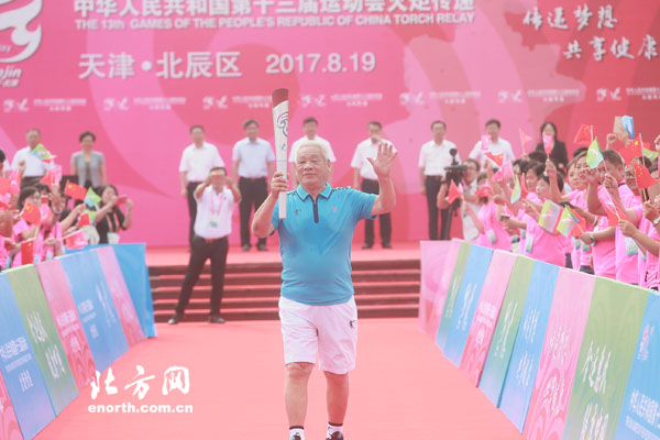 天津北方网讯:8月19日上午9:00,中华人民共和国第十三届运动会火炬传递仪式第十一站在北辰区进行。随着北辰站第一棒火炬手穆祥雄接过火炬出发,第十三届全运会火炬传递仪式北辰站正式开始。