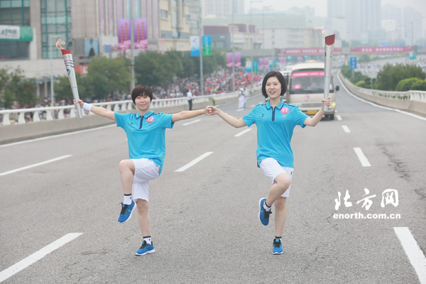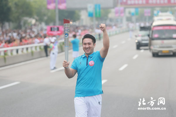 北辰区火炬传递仪式共有35名火炬手参与其中,他们来自各行各业,通过第十三届全运会的圣火传递传播“健康天津,全运惠民”的全民参与理念。