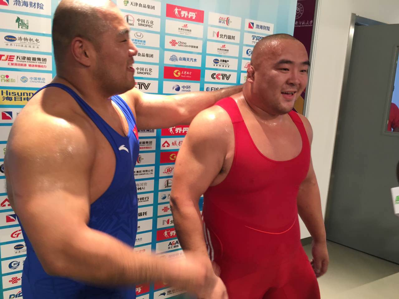 大级别摔跤比赛对选手体能消耗巨大,走下赛场的聂晓明和孟强早已是汗如雨下。在摔跤台上针锋相对的两人,比赛结束后在混合采访区拥抱在了一起,互相询问对方的身体状况。作为老将,他们彼此都清楚坚守在摔跤台上所付出的努力和艰辛。