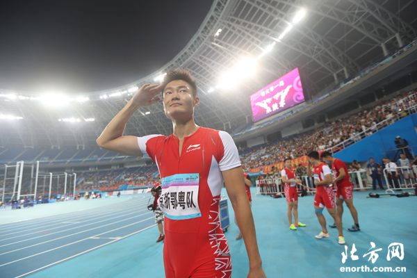 天津北方网讯:本届全运会田径接力项目允许跨省组队,一些强强联合得以实现。在7日晚上的男子4*100米接力决赛中,夺冠热门京浙鄂粤队派出了吴智强、谢震业、苏炳添、张培萌的2017田径世锦赛原班阵容。绝对实力上的巨大优势让这支队伍的夺冠显得没有悬念。最终,京浙鄂粤队在第四道出场,以38秒16的成绩轻松夺冠,这个成绩也超过了他们上个月在世锦赛中取得的成绩。赛后,名将张培萌宣布正式退役。