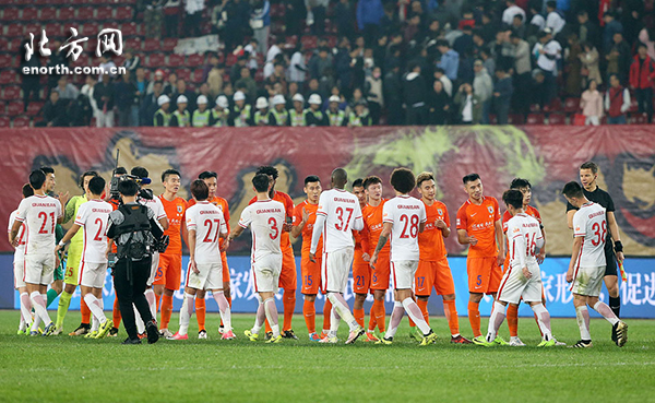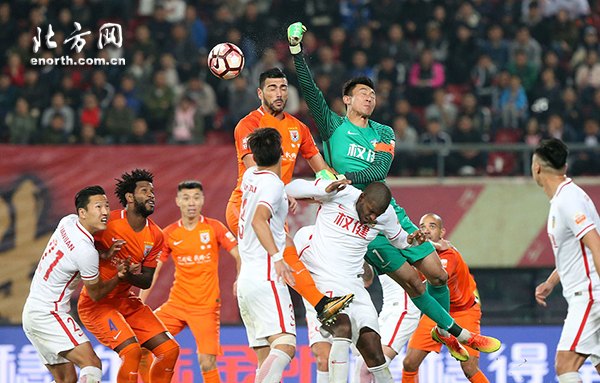 天津北方网讯:北京时间2017年10月14日晚,2017赛季中超联赛第27轮上演一场亚冠资格争夺战,天津权健坐镇主场迎战山东鲁能,最终这场关乎于6分的比赛以两队握手言和结束。天津权健自客场1-4不敌同城对手天津泰达后,遭遇联赛三轮不胜。