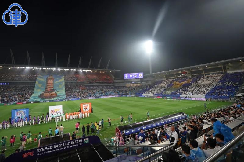 值得一提的是,天津球迷还在正看台和南看台同时打出巨型TIFO,充分展现了天津光荣的足球历史和独特的球迷文化。