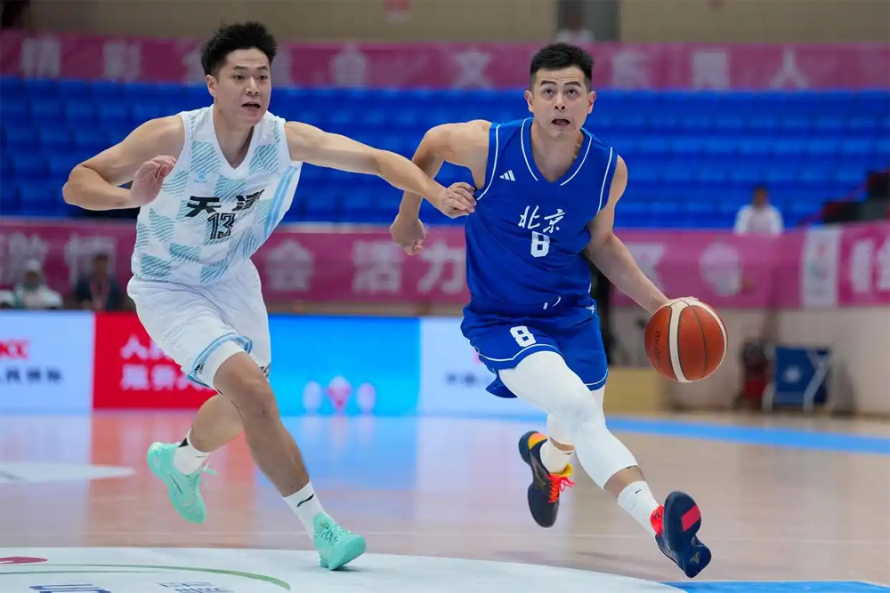 11月5日,在广东省东莞市举行的第十五届全国运动会篮球男子成年组小组赛中,天津队97比88战胜北京队。